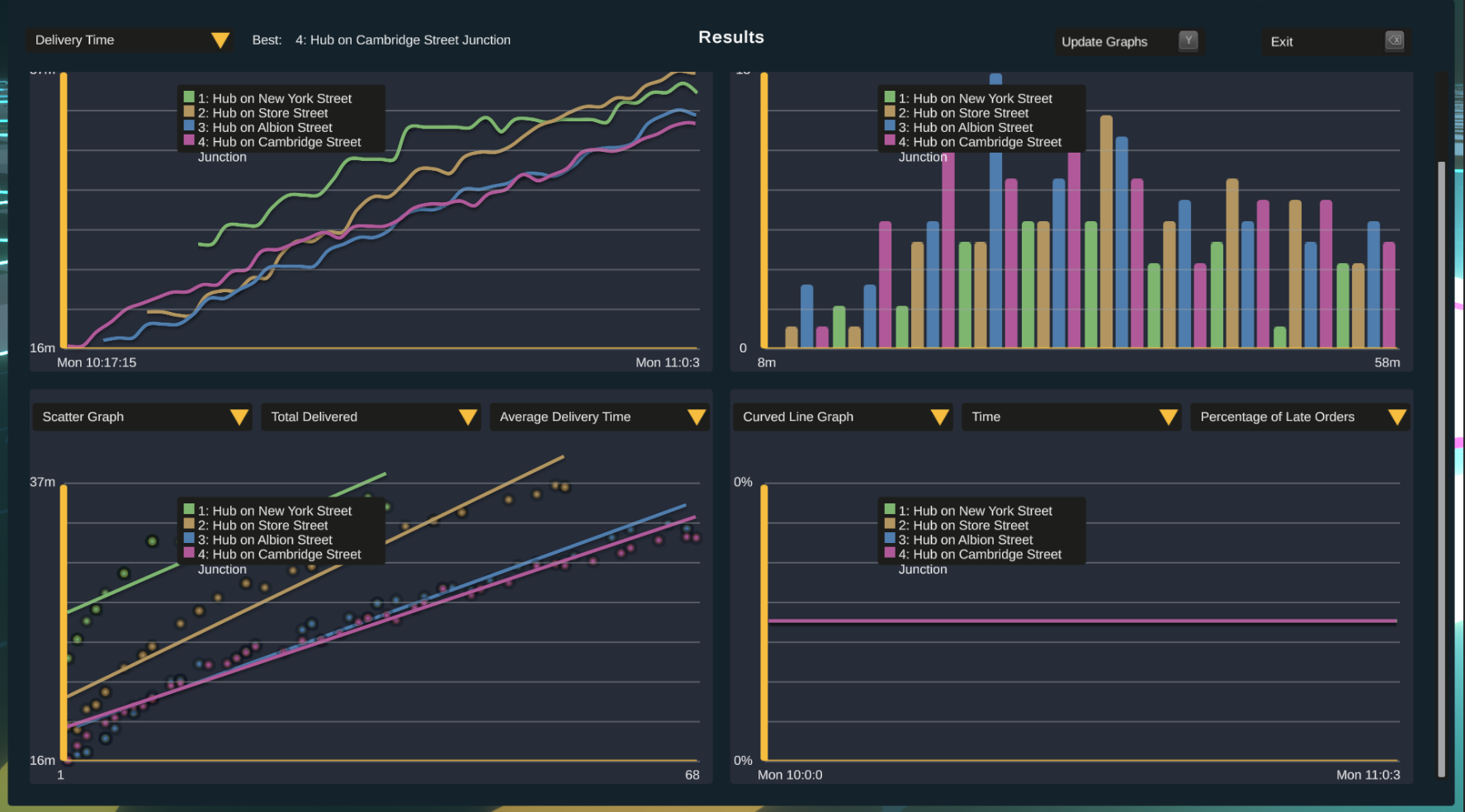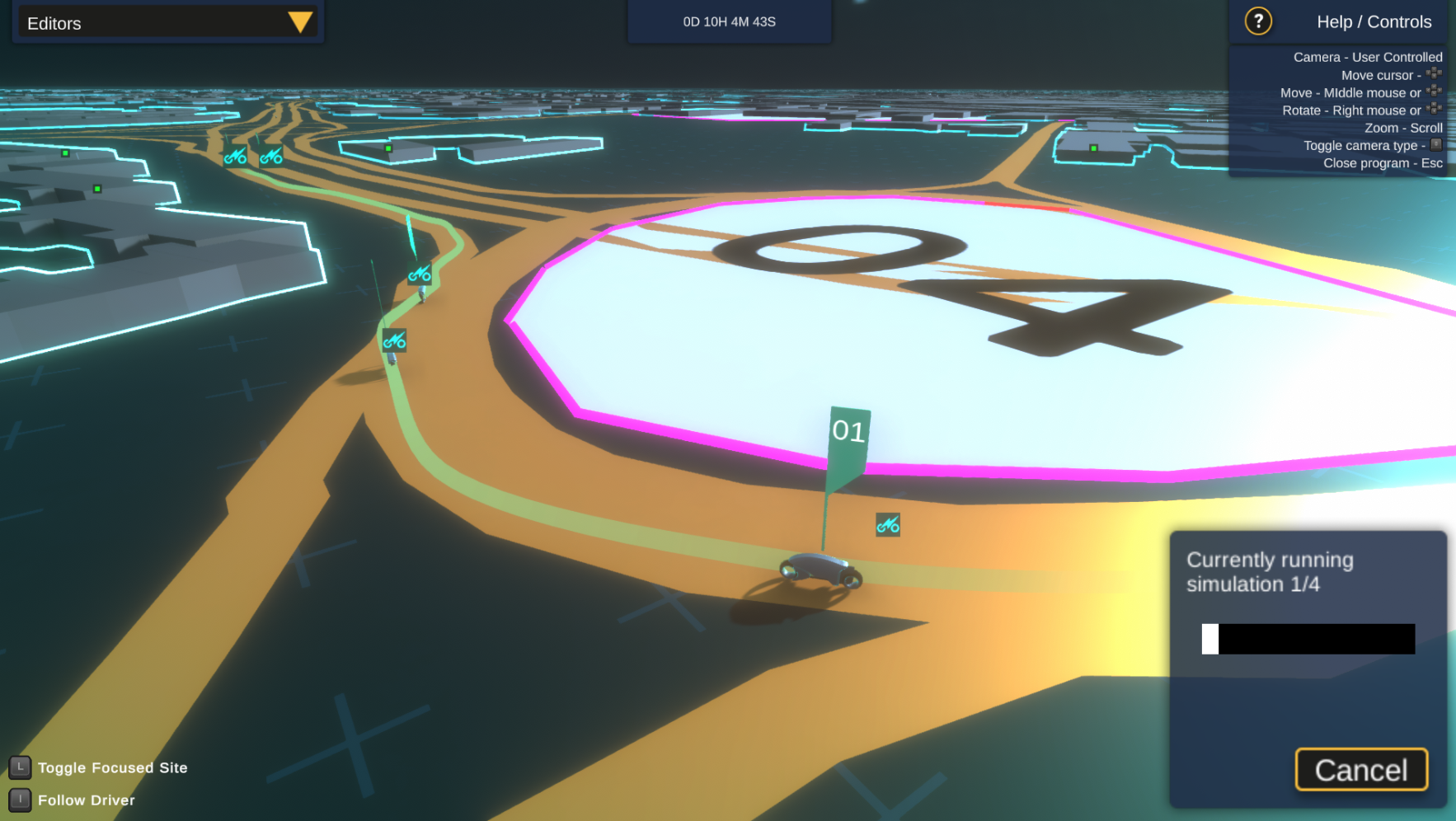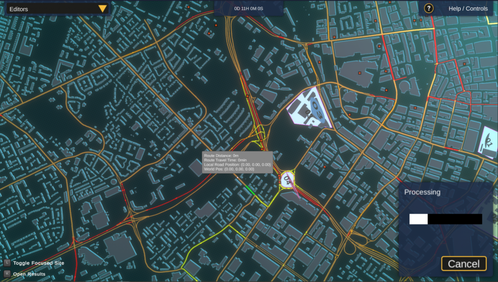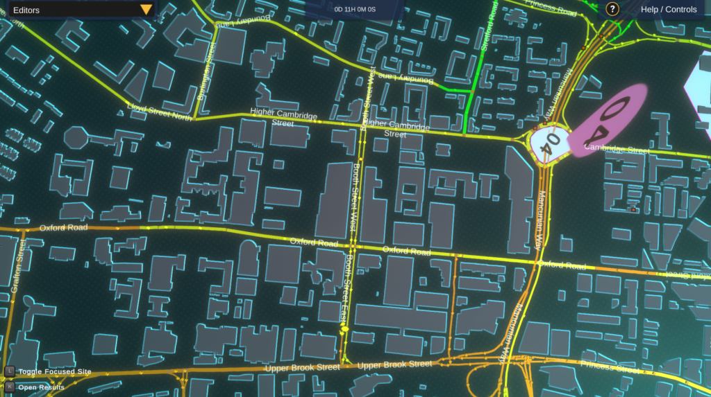 Provides clear, intuitive visualisations of delivery routes, journey times, and operational impact within a city-scale digital twin.